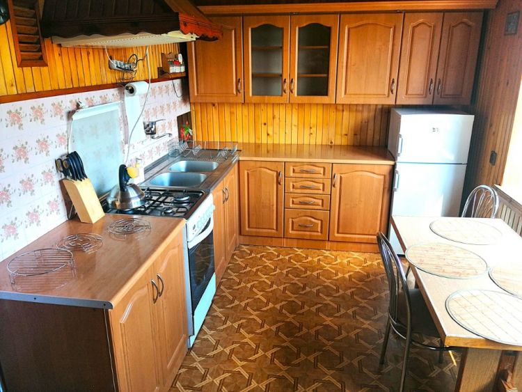 Do dyspozycji: 6 pokoi, 2 łazienki, w pełni wyposażona kuchnia, a także garaż i kilka miejsc parkingowych.