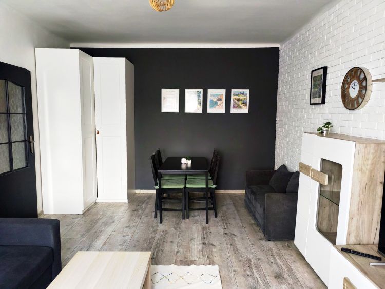 Mieszkanie jest wysokie, naprawdę fajnie urządzone, wszystkie potrzebne sprzęty na wyposażeniu, dużo miejsca do przechowywania. Do dyspozycji piwnica.