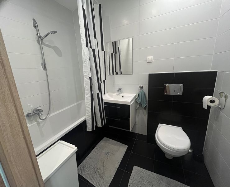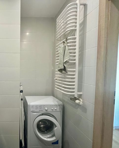 Kuchnia wyposażona jest w kuchenkę z płytą elektryczną i piekarnikiem, lodówkę, mikrofalówkę, czajnik oraz ekspres do kawy na kapsułki. W łazience znajduje się wanna, toaleta, umywalka i pralka.
