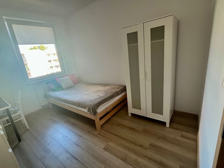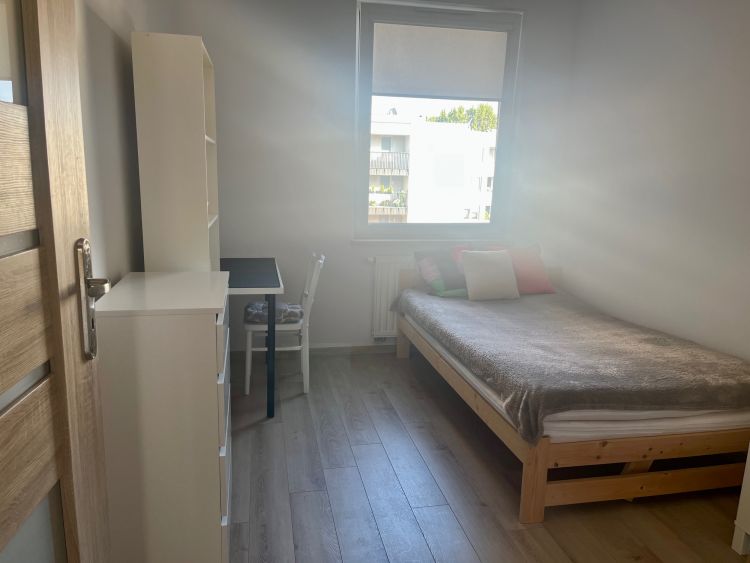 Mieszkanie składa się z trzech niezależnych pokoi. Każdy pokój jest wyposażony w: wygodne, duże łóżko (120-160x200 cm), podwójną szafę, regał i biurko.