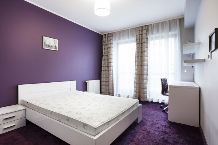 W sypialni znajduje się wygodne łóżko typu king-size z materacem, miejsce do pracy oraz pojemna szafa. Okna francuskie, zapewniają, że w sypialni jest jasno i przytulnie. Na podłogach wykładzina.
