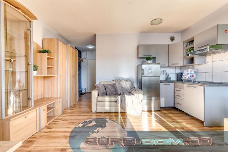 - Pokój dzienny z wyjściem na balkon – umeblowany, ze wszystkimi meblami i wyposażeniem widocznym na zdjęciach.