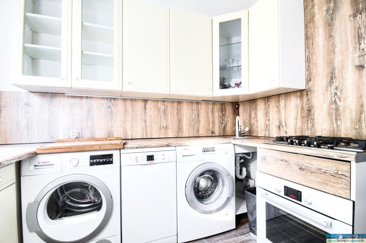 - Kuchnia wyposażona w lodówkę, zmywarkę, pralkę, suszarkę, piekarnik i mikrofalę.