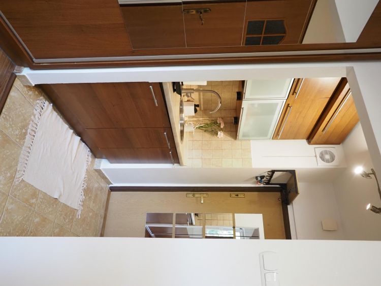 Przy wejściu znajdują się wygodne szafki na buty, wieszak na ubrania, domofon, lustra.